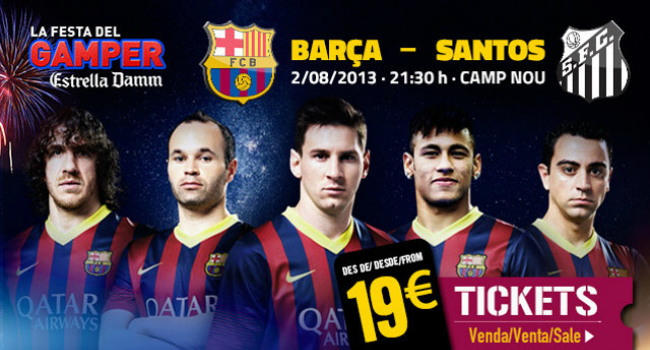 El Santos FC será el rival del Trofeo Joan Gamper que se disputará el próximo 2 de agosto, a las 21.30 hs (hora local), en el Camp Nou, la cual es presentada por Cerveza Damm, patrocinador oficial de los catalanes.