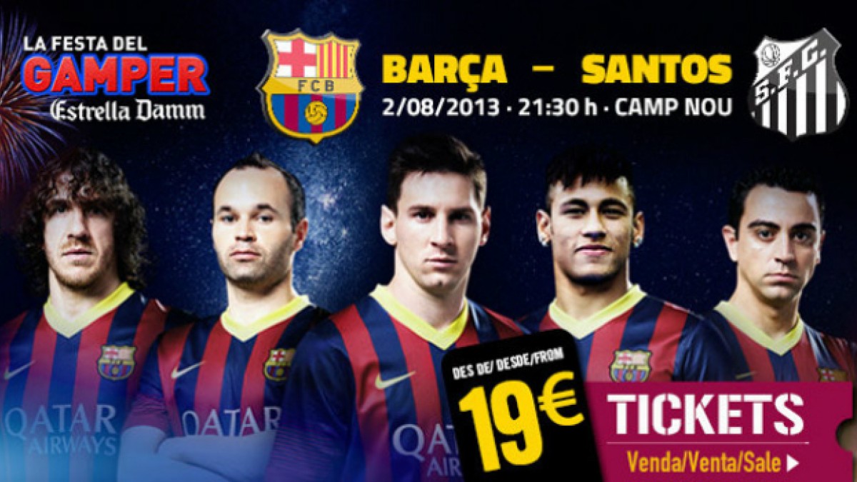 Las entradas ya se pueden adquirir a través de Internet a partir de 19 € y los socios, que podrán comprar un máximo de seis entradas, tendrán un 25% de descuento.El Santos FC será el rival del Trofeo Joan Gamper que se disputará el próximo 2 de agosto, a las 21.30 hs (hora local), en el Camp Nou, la cual es presentada por Cerveza Damm, patrocinador oficial de los catalanes.