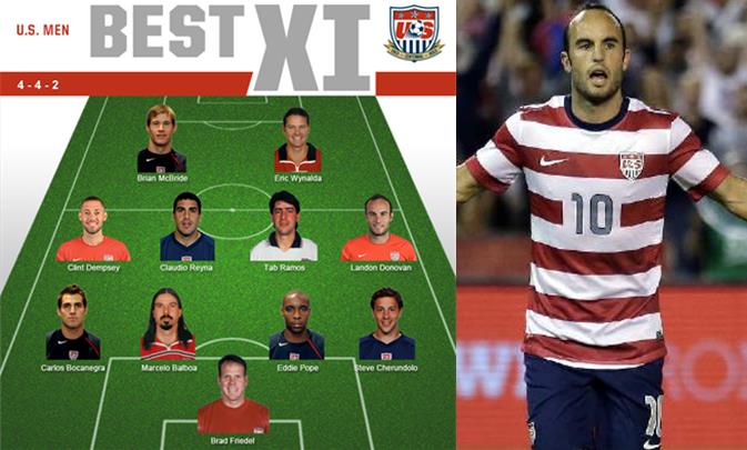 Landon Donovan fue el más elegido, con 52 de los 57 votos posibles. Además, otras glorias del fútbol estadounidense como Brad Friedel o Claudio Reina forman parte de este equipo histórico.