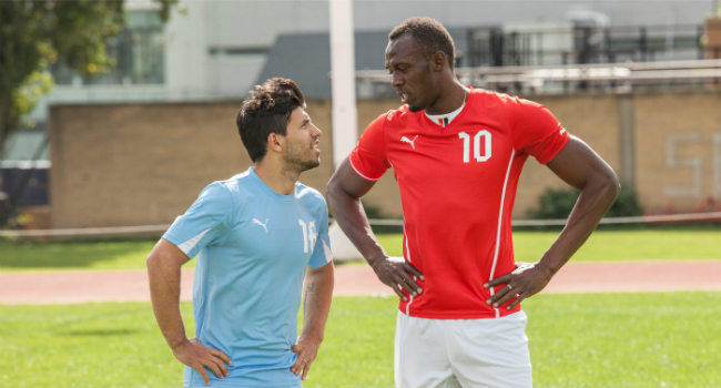 Palpitando el clásico de Manchester, Puma realizó una movida muy ingeniosa. Más allá de que ambos clubes son vestidos por Nike, Puma juntó al Kun Agüero y a Usain Bolt para realizar la previa del City-United.
