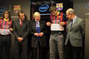 El espíritu de colaboración entre las dos entidades quedará reflejado en la nueva camiseta del FC Barcelona, que llevará el logo de Intel Inside en su parte interior. Esta será la primera vez que un logo se coloca dentro de la camiseta de un club. La nueva camiseta ha sido desvelada este jueves en la Ciudad Deportiva del FC Barcelona en Sant Joan Despí por el presidente del Club, Sandro Rosell, el directivo responsable de Media y Patrocinio, Manel Arroyo, la responsable de marketing de Intel, Deborah Conrad, y los jugadores Carles Puyol y Gerard Piqué. La nueva camiseta se estrenará en el partido de Liga contra el Villarreal del próximo sábado.