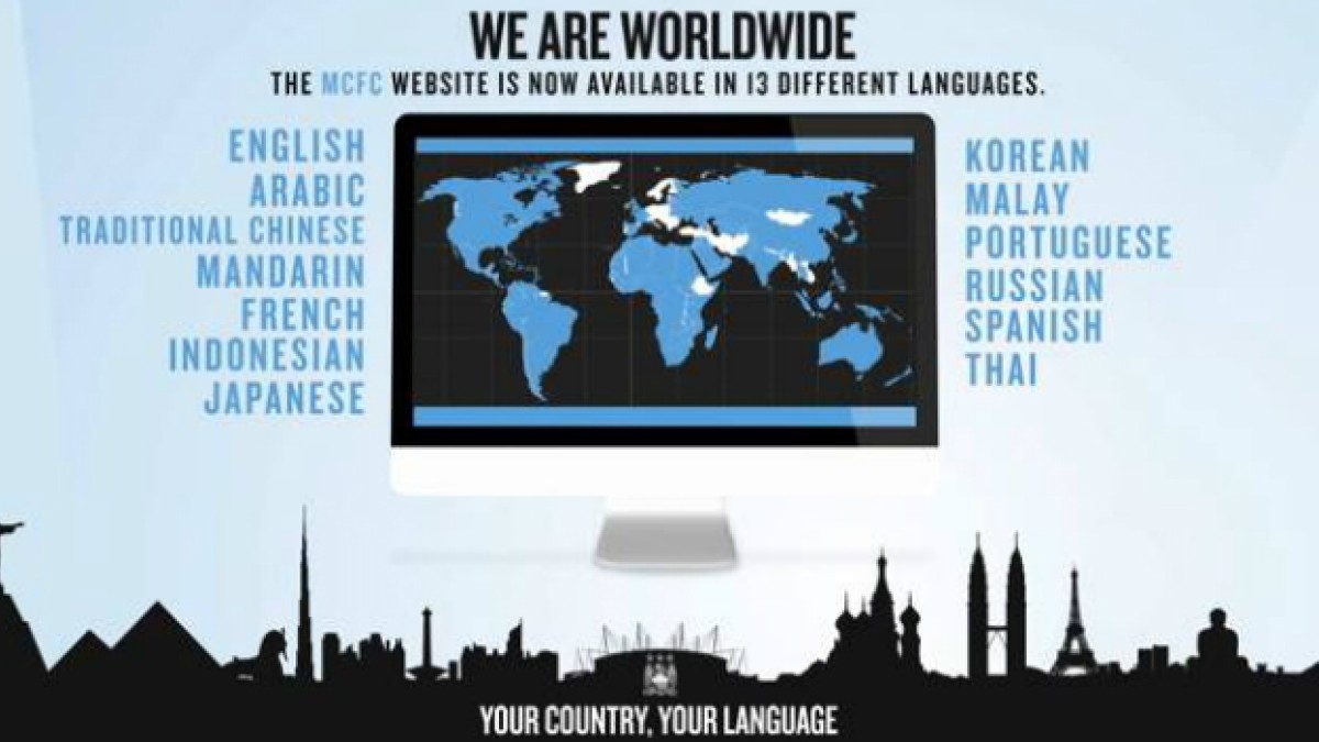De esta forma, y con 13 idiomas en su haber, ahora la Plataforma Web del Manchester City abarca casi el 80% de la población mundial que utiliza Internet, llegando a más de 160 países.El Manchester City lanzó su plataforma web en 10 idiomas más. Entonces a los ya conocidos inglés, mandarín y árabe se le suman, las versiones en español, portugués, chino, francés, indonesio, japonés, coreano, malayo, y ruso.