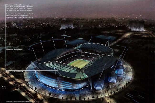 Hoy la capacidad del estadio no llega a los 50 mil lugares, pero en caso de que le den el visto bueno al proyecto del club, se sumarán 13.500 butacas para los socios del City. Las tribunas se construirán detrás de los arcos, y lograrán llevar la capacidad del estadio a los 61 mil lugares.