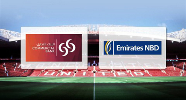 Manchester United anunció dos acuerdos de patrocinio regionales con el Banco Comercial de Qatar y el Emirates NBD Bank.