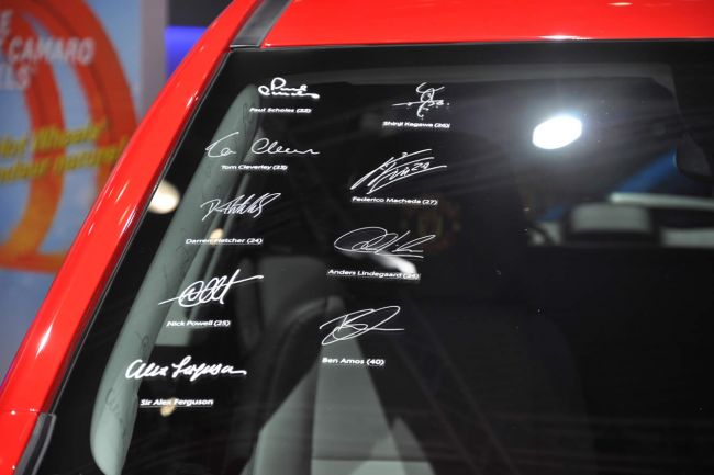 Todo el dinero que se recaude irá a la Fundación Manchester United que se encarga de trabajar en las zonas más necesitadas, educando a los niños utilizando al fútbol como vehículo. Andy Higgins, presidente de Chevrolet en el Reino Unido, declaró: "Estamos muy ilusionados con esta subasta. Por lo que sé, es la primera vez que los seguidores del Manchester United pueden conseguir un coche firmado por toda la plantilla y estoy seguro de que hay un gran número de seguidores en todo el mundo que querrán hacerse con él. El dinero recaudado en la subasta supondrá una ayuda significativa al fantástico trabajo que lleva a cabo la Fundación Manchester United. Estamos encantados de colaborar en este proyecto".