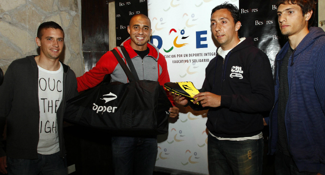 De la mano de Topper y la fundación DIES (Asociación por un deporte integrado, educativo y solidario), en la que el franco argentino es presidente, se donaron al Club botines, zapatillas y guantes de arquero de la marca.