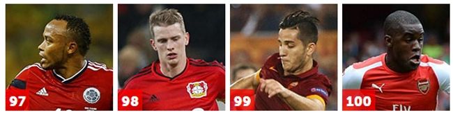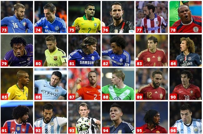 Los otros latinoamericanos en el ranking son: Agüero (15º), James Rodríguez (17º), Mascherano (18º), Alexis Sánchez (26º), Arturo Vidal (36º), Marcelo (49º), Keylor Navas (50º), Oscar (54º), Bravo (62º), Thiago Silva (63º), Zabalate (71º), Dani Alves (75º), David Luiz (84º), Fernandinho (85º), Demichelis (86º), Dante (91º), Garay (92º), Rojo (94º), Gaitán (96º), Zúñiga (97º).