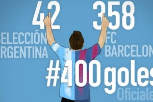 Este fin de semana, en el encuentro entre Barcelona y Granada, por La Liga BBVA, Lionel Messi marcó dos goles y llegó así los 401 goles en su carrera. El rosarino tiene 359 goles con la camiseta Blaugrana y 42 con la Selección argentina. Además, en la historia de la liga española está a tan sólo tres de Telmo Zarra, con 248, como máximo goleador.
