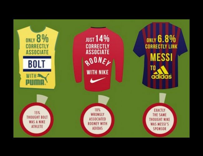 Pero para la marca de Oregon no es todo felicidad. Solo un 14% relaciona a Wayne Rooney con Nike, y un 10% lo emparenta con adidas. Mientras que, Usain Bolt fue asociado correctamente con Puma, por el 8% de los jóvenes.