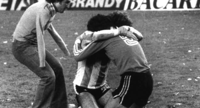 “Victor Dell' Aquila es un jugador de fútbol amateur de Argentina y un fanático apasionado que perdió sus brazos cuando tenía 12 años de edad. Pero su amor por el fútbol permaneció fuerte. El 25 de junio de 1978, estaba presente en el estadio cuando su amada selección Argentina de fútbol ganó la Copa Mundial de la FIFA™. Saltó la cerca de alambre y corrió por todo el campo hasta llegar a donde estaban el capitán argentino y el arquero sobre sus rodillas abrazándose con emoción. Fue un momento emotivo para Victor, el pueblo argentino y todo el mundo; un simple y verdadero abrazo del alma y el espíritu. La imagen de Victor parado cerca de Daniel Passarella y Ubaldo Fillol quedó para siempre inmortalizada como "El abrazo del alma".”