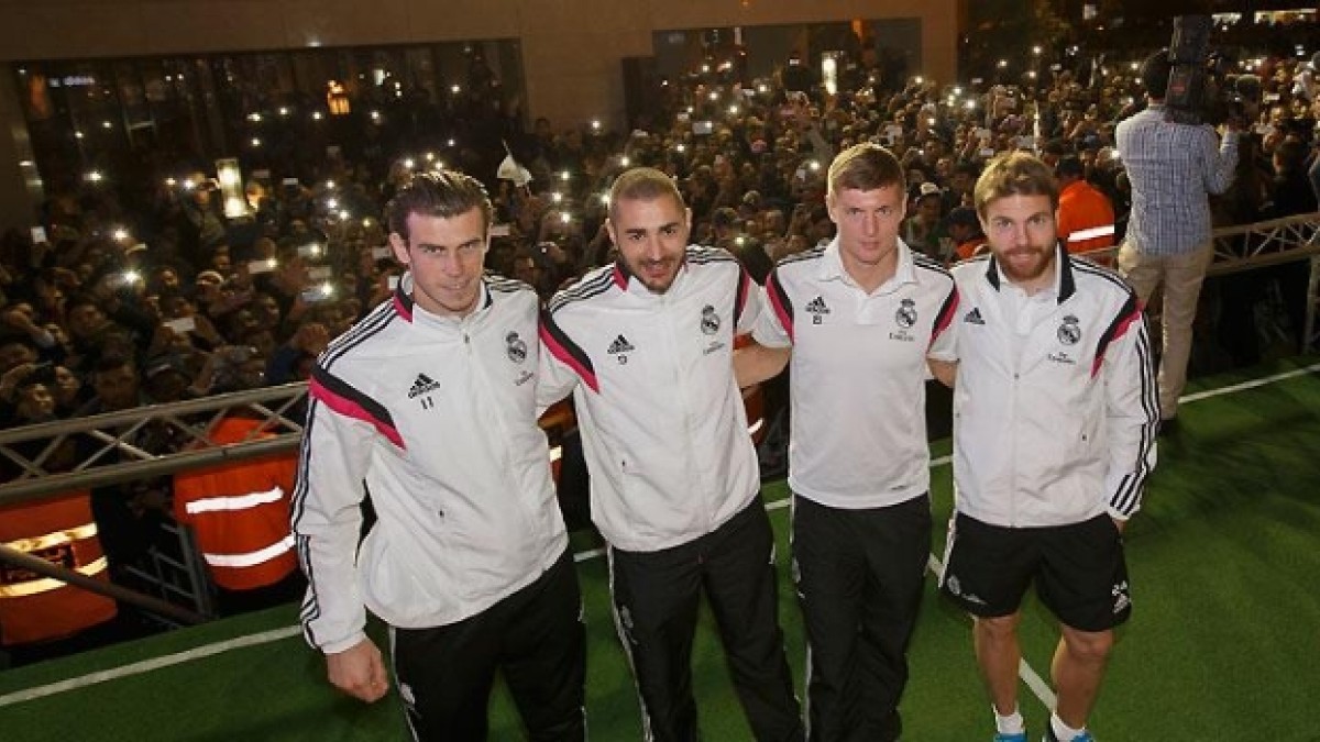Gareth Bale, Karim Benzema, Toni Kross e Ilarra, jugadores del Real Madrid, aprovecharon su descanso antes de enfrentar a San Lorenzo por la final del Mundial de Clubes para visitar la tienda adidas en Marrakesh.