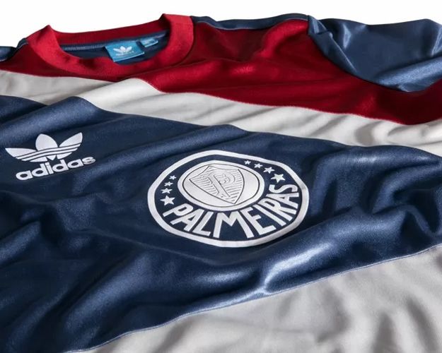 Luego, la suplente es un homenaje al arquero Zetti, muy recordado por sus penales en 1988 ante el Flamengo. Esta camiseta es azul en pecho y mangas largas, con unas franjas blancas y rojas que cruzan la camiseta en diferentes direcciones. El escudo del Palmeiras está en el centro del pecho y, al igual que en el otro modelo, aparece el logo de adidas Originals.