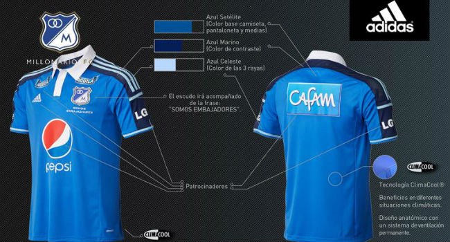 adidas dio a conocer en Colombia la nueva camiseta que vestirá Millonarios F.C. durante la temporada 2014 y ratifica su compromiso con el desarrollo y apoyo a la disciplina con mayor número de seguidores en Colombia y el mundo.
