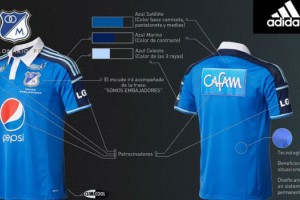 Según Federico Sarmiento, presidente de adidas Colombia, “Para el diseño de esta nueva camiseta tuvimos en cuenta el pasado glorioso del equipo así los jugadores tendrán una inspiración para afrontar las competencias de este año”. Ésta será la indumentaria oficial del equipo para los partidos de la Liga Postobón, la Copa Postobón y la Copa Total Sudamericana.El diseño de esta nueva camiseta está inspirado en el pasado glorioso del equipo embajador y por eso el escudo está acompañado de la frase “Somos embajadores”. La indumentaria cuenta con la combinación de las dos gamas tradicionales de azul, y esta vez las tres rayas de la marca son de color azul celeste.