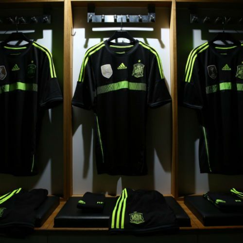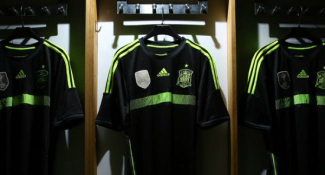 En la camiseta alemana predominan los colores negro y rojo que se encuentran distribuidos en franjas, mientras que en la camiseta de España, el color predominante es el negro, solo acompañado por algunas líneas verdes.