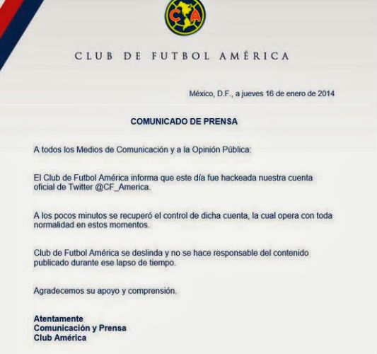 Uno de los clubes más grandes de México sufrió una muy mala pasada en Twitter, cuando el jueves pasado se alertaron de un hackeo a su cuenta, que disparó un tweet sumamente llamativo, para propios y desconocidos.
