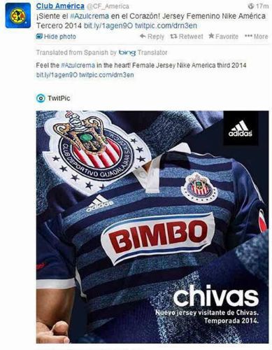 Aquel día, los aficionados del América que siguen la cuenta oficial de su club, se llevaron la ingrata sorpresa de observar como desde allí se tuiteaba: "¡Siente el #AzulCrema en el Corazón! Jersey Femenino Nike America Tercero!”, y la foto que acompañaba era la camiseta de las Chivas de Guadalajara.