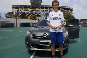 Esto es frecuente en el fútbol europeo, con los jugadores posando con sus autos último modelo y, ahora, llegó a Sudamérica. El Vasco recibió un Citroën C4 Lounge, de parte de Verónica Haro y Federico Frascaroli, representantes de la empresa.