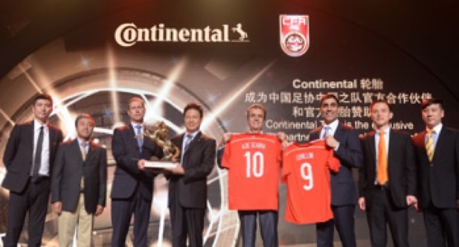 Durante cuatro años, la empresa de neumáticos Continental será patrocinadora de la Asociación China de Fútbol, llegando así por primera vez a una institución deportiva asiática.