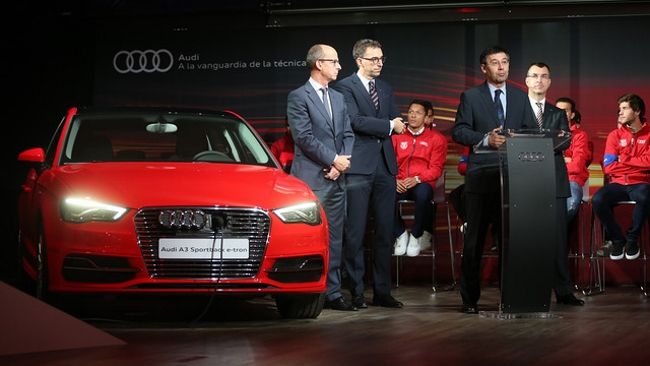 "Hace ocho años que el FC Barcelona y Audi comenzaron una relación que va mucho más allá de un patrocinio. Nos sentimos identificados con una compañía que es líder de su sector. Para nosotros es una satisfacción y un orgullo compartir la pasión por querer ser mejores cada día, por evolucionar y crecer, apostando por las nuevas tecnologías, la innovación y la deportividad. Nos gusta mucho la iniciativa de Audi a favor de la movilidad sostenible en nuestras ciudades a través de e-tron, la tecnología híbrida enchufable de Audi" dijo el presidente Josep Maria Bartomeu.
