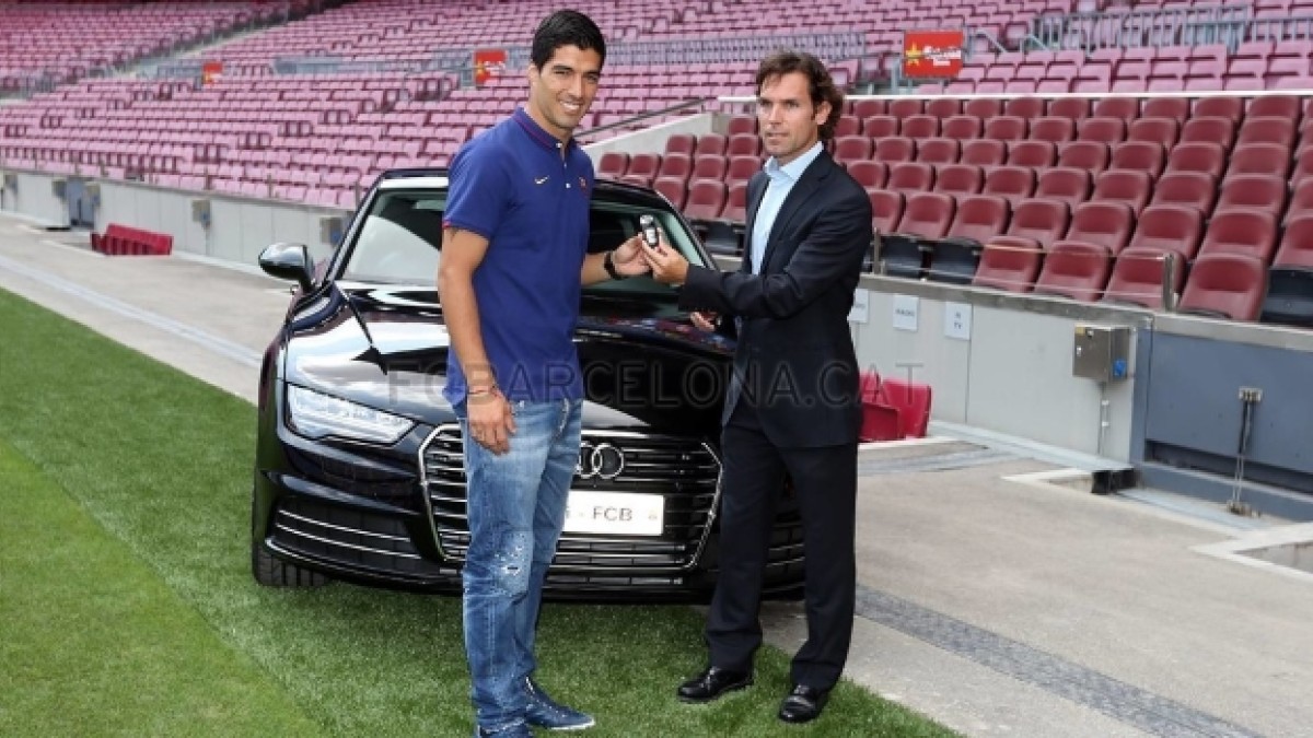 Audi, patrocinador del FC Barcelona, habitualmente obsequia uno de sus autos último modelo a los jugadores Blaugranas y en esta ocasión le tocó a Suárez. El ex Liverpool eligió al Audi A7 TDI Quattro y, por supuesto, posó para la foto con su nuevo vehículo.