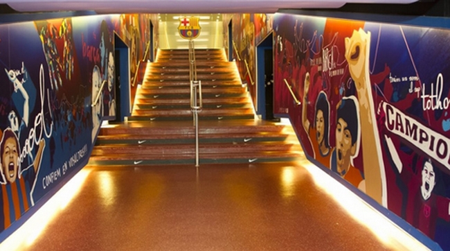 Cuando comience la temporada 2014/15 de La Liga BBVA, los jugadores del Barcelona recorrerán un renovado túnel desde los vestuarios del Camp Nou hacia el campo de juego. Ese espacio fue redecorado completamente con imágenes y mensajes de aliento de los hinchas del equipo Culé.