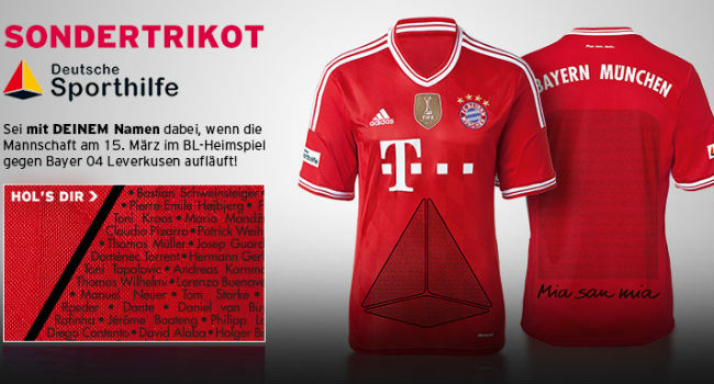 A través de una iniciativa solidaria, el Bayern Munich invita a sus hinchas a estar presentes en su camiseta. El 15 de marzo, cuando los dirigidos por Pep Guardiola enfrenten al Bayern Leverkusen, saldrán a la cancha con una camiseta especial, que tendrá los nombres de todos los fanáticos que se sumen a esta movida.