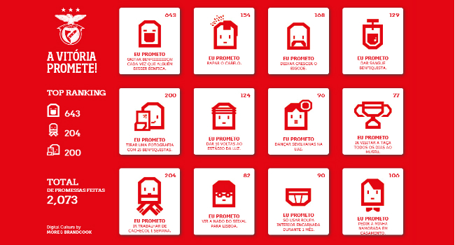 Con el objetivo de romper con la maldición de Bela Gutman, el club lanzó la aplicación en Facebook que se llama “Victory Promise”, en el cual los hinchas pueden elegir entre doce promesas para realizar en caso de que el Benfica salga campeón.