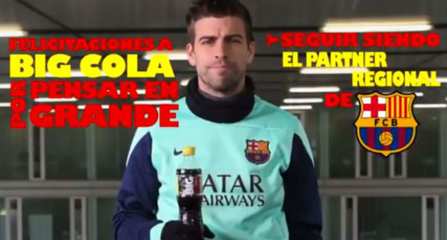 Gerard Piqué, Cesc Fábregas, Pedro, Alexis Sánchez y Adriano, participaron del comercial de anuncio de la renovación, y agradecieron a la bebida gaseosa por seguir confiando en los blaugranas.
