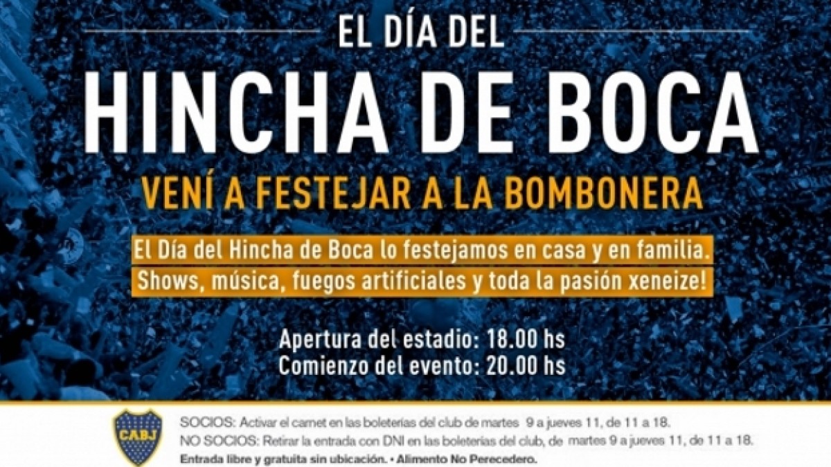 La Bombonera, que por primera vez será el escenario de esta celebración de la pasión xeneize, abre sus puertas a las 18 y dos horas después comenzará el espectáculo. Shows, música, artistas, fuegos articiales, jugadores históricos, videos y un homenaje inolvidable a ese Jugador Número 12 que nació en la gira de 1925 de Boca por Europa. Fue la primera de un equipo argentino por el Viejo Continente y contó con la presencia de Victoriano Caffarena, un hincha que acompañó al plantel durante los 22 días de aventura y triunfos, realizando tareas de masajista, utilero y todo lo que pudo hacer para colaborar. El plantel lo bautizó como el jugador número 12 de aquel equipo y la historia lo volvió leyenda.
