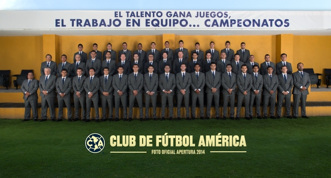 El Club América de México se tomó la habitual foto oficial del plantel que disputa la presenta Liga BBVA Bancomer Mx y tanto los jugadores como el cuerpo técnico vistieron trajes Calvin Klein, nuevo patrocinador de la institución azteca.