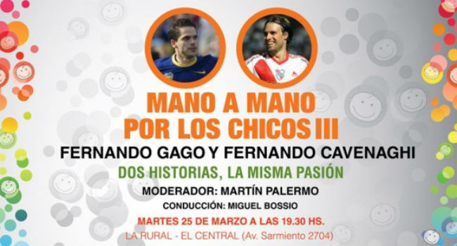 En la previa del clásico del fútbol argentino y por tercera vez consecutiva, la Fundación SOS Infantil, BOCA Social y River Solidario se unen por el futuro de los chicos. Los protagonistas de este encuentro serán Fernando Gago y Fernando Cavenaghi, ambos futbolistas desarrollaran una nueva edición de “Mano a mano por los chicos “.
