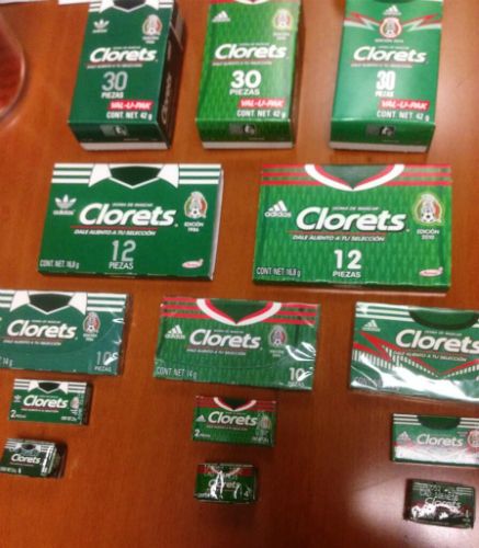 Desde México, podemos ver cómo la marca de pastillas refrescantes, Clorets, lanzó ediciones especiales de sus productos, rememorando las camisetas del Tri en los años 1986, 2010 y 2014, todas diseño de adidas.