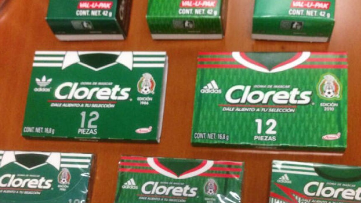 Desde México, podemos ver cómo la marca de pastillas refrescantes, Clorets, lanzó ediciones especiales de sus productos, rememorando las camisetas del Tri en los años 1986, 2010 y 2014, todas diseño de adidas.