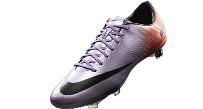 Los botines combinan tonos morados y naranjas, con la Swoosh en negro en la zona del empeine y Nike en el borde interno, en el mismo color. Estarán a la venta a partir del 24 de marzo.