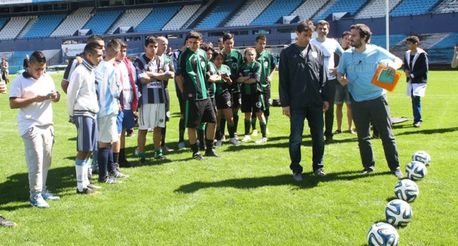 Diego Milito, mientras se recupera de una lesión, brindó esta semana una clínica para 24 chicos del programa Futbol Callejero que apoya Racing Solidario.