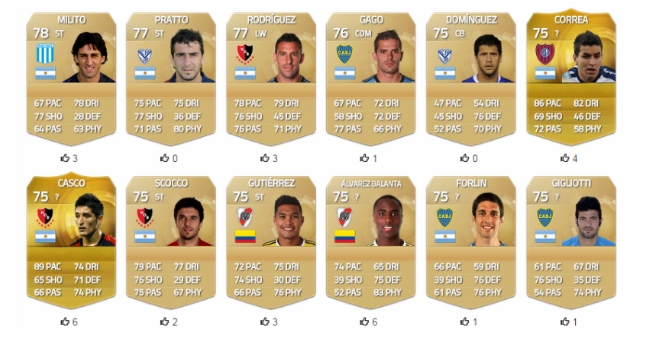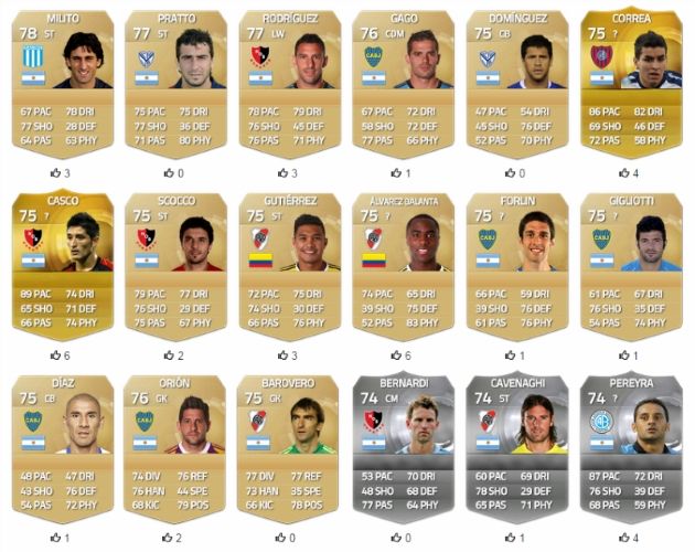 EA Sports presentó un listado de los 18 mejores jugadores del fútbol argentino en el FIFA 15, el próximo videojuego de la saga que está próximo a lanzarse. Diego Milito, delantero de Racing, es el mejor jugador del fútbol argentino en el videojuego con un nivel de habilidades de 78 puntos.