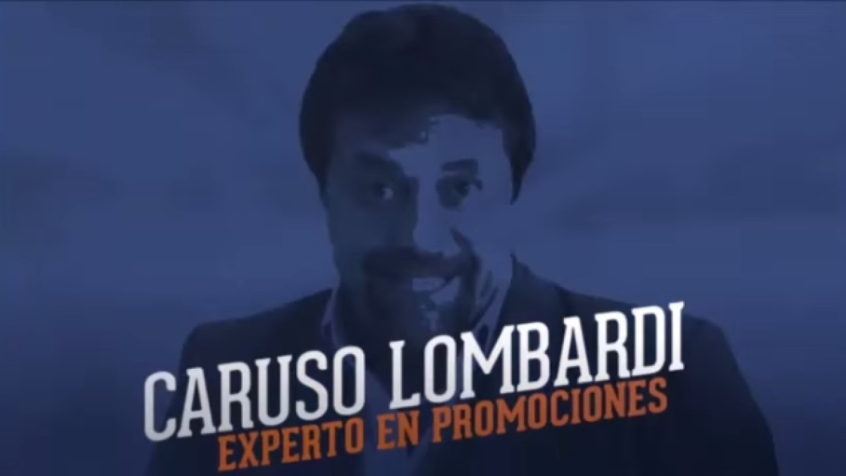 Caruso es consultado por los clientes de un supermercado sobre diferentes promociones y descuentos y el responde con algunas frases y gestos típicos de su personalidad dentro de una cancha de fútbol.