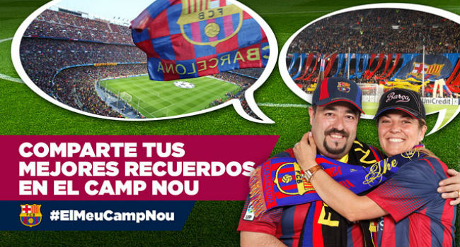Coincidiendo con la consulta a los socios de cómo debe ser el Nuevo Espai Barça el próximo 5 de abril, el FC Barcelona abre sus canales sociales para que los socios y aficionados azulgranas les hagan llegar las fotos más emotivas y personales de sus partidos vividos en el Camp Nou. A través de la etiqueta #ElMeuCampNou en las redes sociales, los fans pueden enviar sus retratos y compartir con el mundo la experiencia única de vivir 'in situ' una jornada en las instalaciones.