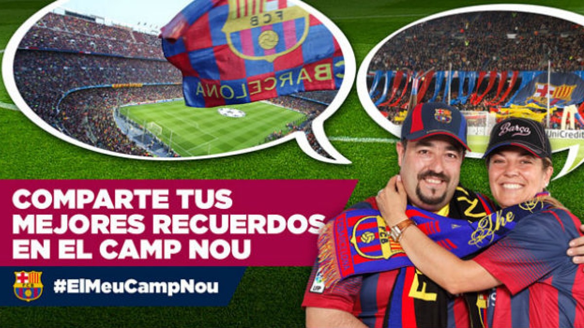 Coincidiendo con la consulta a los socios de cómo debe ser el Nuevo Espai Barça el próximo 5 de abril, el FC Barcelona abre sus canales sociales para que los socios y aficionados azulgranas les hagan llegar las fotos más emotivas y personales de sus partidos vividos en el Camp Nou. A través de la etiqueta #ElMeuCampNou en las redes sociales, los fans pueden enviar sus retratos y compartir con el mundo la experiencia única de vivir 'in situ' una jornada en las instalaciones.