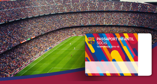 En el marco del proyecto 'Niños al Camp Nou' el FC Barcelona ha creado para la temporada 2014/15 el Pasaporte Infantil del Socio, un pase para los socios menores de 8 años no abonados. Este pase incorpora un código de barras, como el de un abono clásico, que les permitirá entrar a los partidos directamente por los turnos de acceso del Estadio.