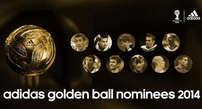 Lionel Messi, Ángel Di María, Javier Mascherano, Tomas Müller, Toni Kroos, Matt Hummels, Phillip Lahm, Arjen Robben, Neymar y James Rodríguez son los elegidos por la FIFA y adidas como candidatos al Balón de Oro de Brasil 2014. Lo particular de la noticia es la forma que eligieron para contar: a través de su cuenta de Twitter, la pelota adidas Brazuca cobró vida y explicó por qué eligió a cada uno.