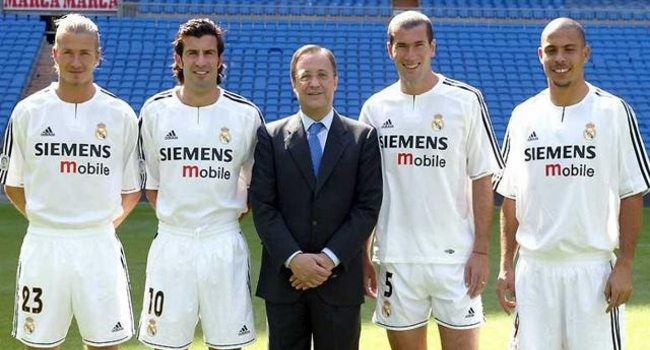 En sus doce años de Presidente, Florentino gastó 1.148 millones de euros en jugadores. Sus primeras grandes compras fueron Luis Figo, Zinedine Zidane, Ronaldo y David Beckham. Tan sólo ellos cuatro sumaron 205 millones de euros y conformaron el primer equipo Galáctico. Esta primera etapa culminó con compras por 421,45 millones de euros