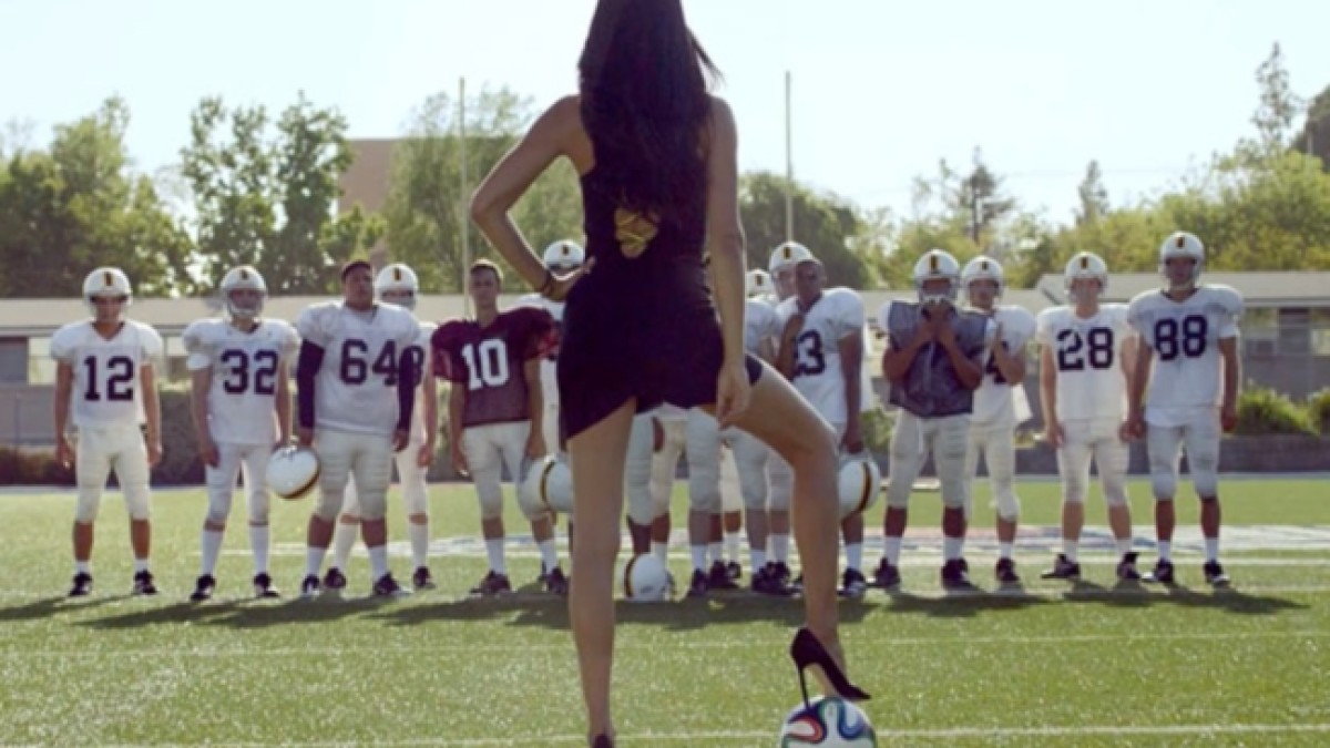 La modelo de Victoria’s Secret luce toda su belleza con una adidas Brazuca en sus pies e invita a los jugadores del “football” estadounidense a pasarse al “fútbol”. La frase final del spot es “Por un mes, que todos sean hinchas del fútbol”.