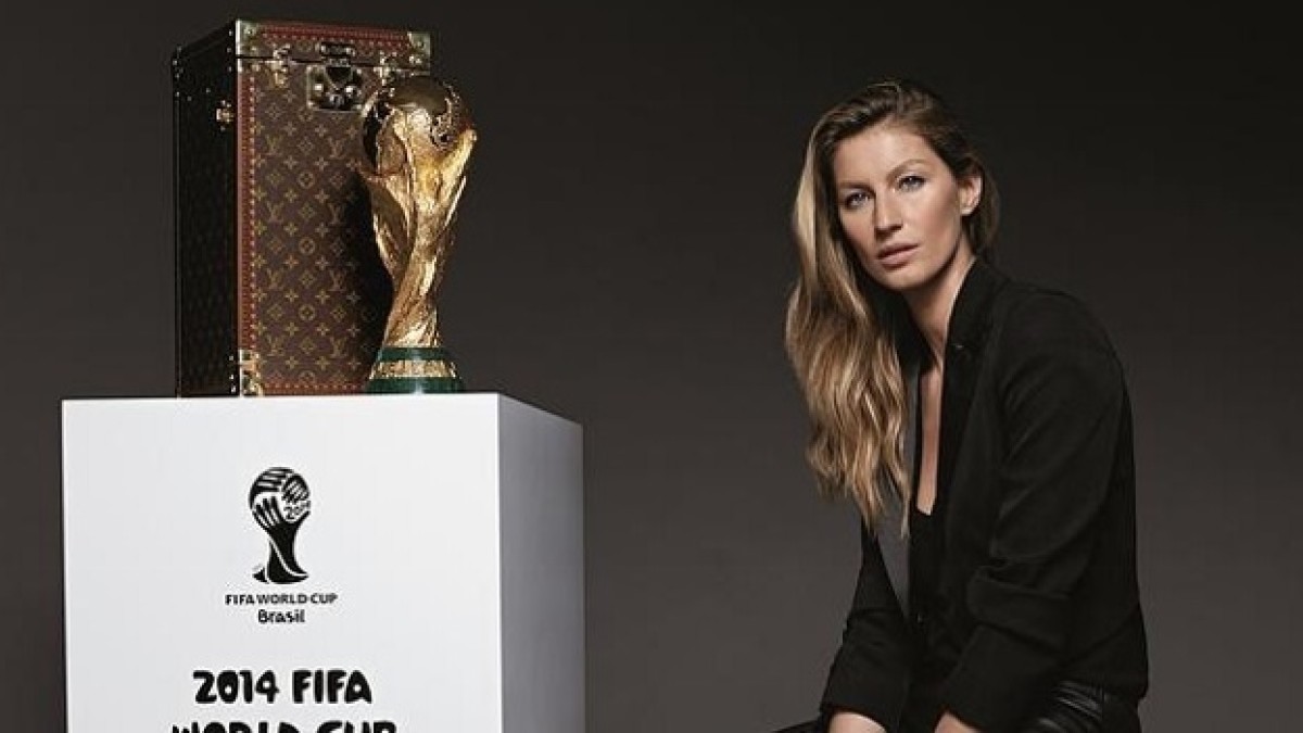 La modelo brasileña Gisele Bündchen fue la elegida por la FIFA para ser quien transporte el trofeo de la Copa del Mundo al estadio Maracaná el próximo domingo en un estuche diseñado especialmente para la ocasión por la exclusiva firma Louis Vuitton. La relación entre la FIFA y Louis Vuitton comenzó en Sudáfrica 2010 y seguramente seguirá en Rusia 2018.
