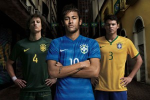 Detrás de este escudo, en la parte interna de la camiseta, un diseño circular presenta un diamante de la bandera brasilera que está rodeado con la frase: “Nascido para jogar futebol”, que en español significa “Nacido para jugar al fútbol”.Ayer, 5 de marzo, Brasil jugó el primer tiempo de un partido amistoso en Johannesburgo contra Sudáfrica usando su nuevo conjunto titular. En el segundo tiempo, la selección sorprendió al público con la primera aparición en la cancha del nuevo conjunto alternativo de Brasil, que completa así el guardarropa del equipo nacional del 2014 compuesto por el conjunto titular, alternativo y tercero alternativo.