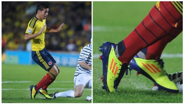 El sitio especializado SoccerBible elaboró un interesante informe acerca de James Rodríguez y sus botines. El colombiano, recientemente vendido del Mónaco al Real Madrid por 80 millones de euros, le ha sido fiel a adidas desde sus inicios en Envigado hasta la última Copa del Mundo Brasil 2014 incluída, utilizando siempre los botines de las tres tiras.