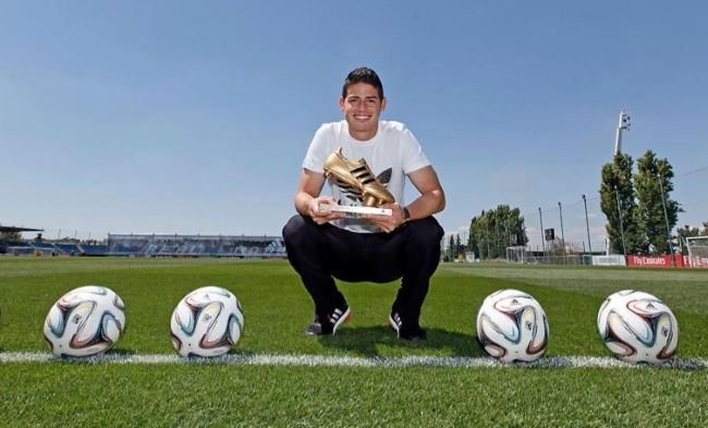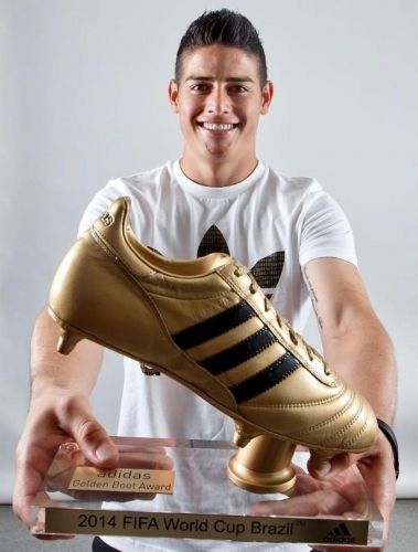 Seis goles en cinco partidos marcó James Rodríguez en Brasil 2014 y así se consagró como el máximo goleador del Mundial que terminaría ganando Alemania. Adidas, socio FIFA, le entregó oficialmente este viernes el Botín de Oro al colombiano, en una ceremonia llevada a cabo en la Ciudad Deportiva del Real Madrid.