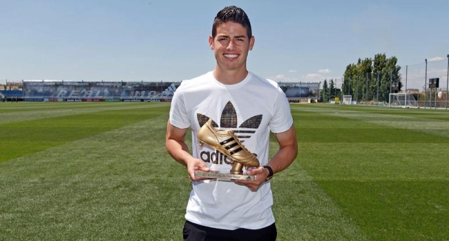 Seis goles en cinco partidos marcó James Rodríguez en Brasil 2014 y así se consagró como el máximo goleador del Mundial que terminaría ganando Alemania. Adidas, socio FIFA, le entregó oficialmente este viernes el Botín de Oro al colombiano, en una ceremonia llevada a cabo en la Ciudad Deportiva del Real Madrid.