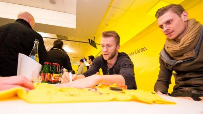 En la tradicional fiesta de navidad de todas las temporadas, el Borussia Dortmund recibió en su estadio Signal Iduna Park a más de 1000 fanáticos y representantes de la institución. Los jugadores del BVB junto al DT Jurgen Klopp agasajaron a los invitados y la principal acción del evento fue ver a los protagonistas servirles y obsequiarles cerveza a los hinchas.